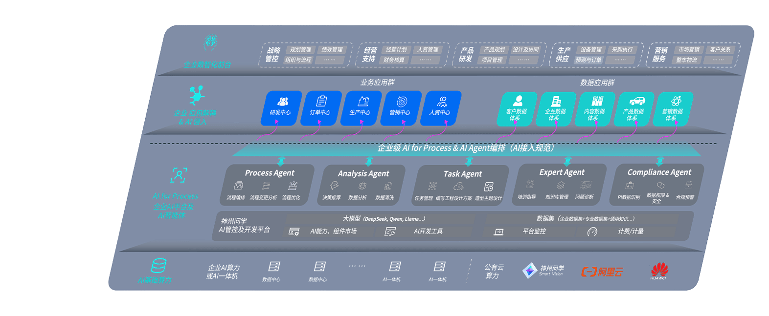 地球人问学智车解决方案是一套基于AI技术的汽车行业智能化系统,,,,覆盖从底层算力到顶层AI应用的全栈方案。。方案由算力层、、模型层和应用层组成:算力层,,,方案支持多种一体机配置,,,,具备云端灵活部署、、多云适配以及动态优化计算资源的能力;模型层,,,,地球人问学平台版提供了企业级AI应用一站式构建与管理平台,,支持基于后训练强化技术的汽车企业专属模型的训练、、评测和运营;应用层,,地球人问学DeepSeek版提供包括超级员工、、智能招采、、、智能营销、、、智能客服、、AI for BI等一系列解决方案,,,可助力汽车行业实现数字化转型,,让管理更智能、、、、响应更敏捷。。。。
